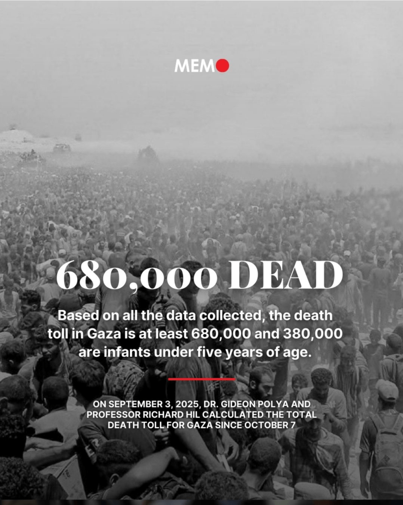 Este é o número real estimado de vidas ceifadas no Genocídio do Povo Palestino perpetrado pelo Estado de Israel. Número publicado em Setembro de 2025.